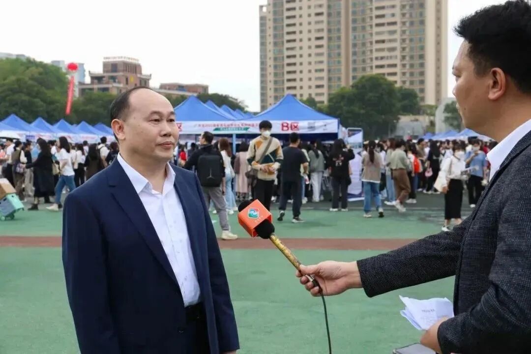 校長陽愛民在供需見面活動現場接受電視臺采訪