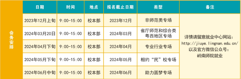 邀請函 | @用人單位 嶺南師范學院2024屆畢業生秋季學期校園招聘活動安排