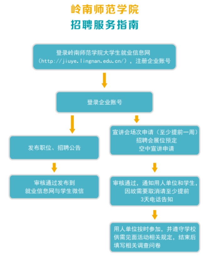 線上招聘活動持續開放,用人單位可登錄嶺南師范學院就業信息網注冊登錄后選擇“職位發布”模塊發布在線招聘信息。